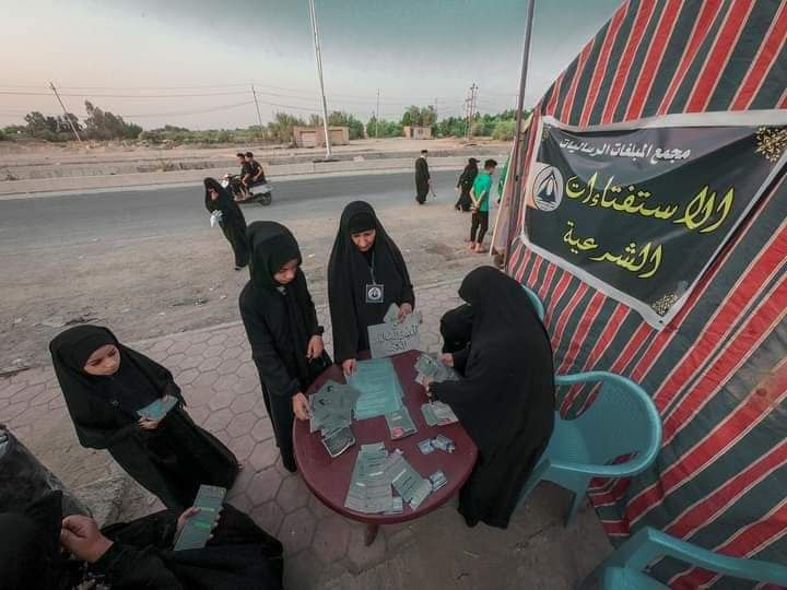يواصل مجمع المبلغات الرساليات في واسط محطاتة التبليغية والتوعية الى الزائرين المتجهين سيرا على الأقدام نحو كعبة الأحرار كربلاء المقدسة.