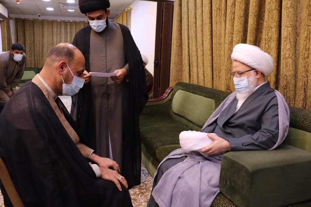 عمَّم سماحة المرجع الديني آية الله العظمى الشيخ محمد اليعقوبي (دام ظله) في مكتبه بمدينة النجف الأشرف، أمس الثلاثاء، عدداً من طلبة العلوم الدينيّة في مدرسة الإمام الجواد (ع)، بالزي الحوزوي الديني، بعد إكمالهم المراحل الدراسية المقررة.