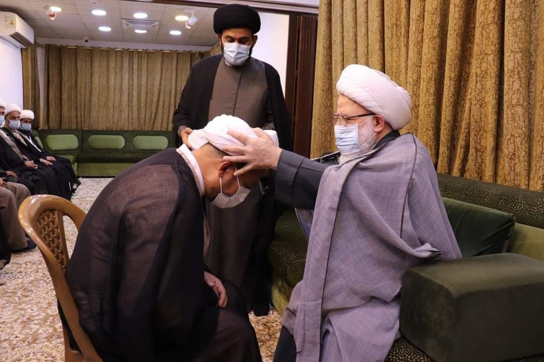 بالصور.. المرجع اليعقوبي يعمِّمُ عدداً من طلبة العلوم الدينية بالزي الحوزوي