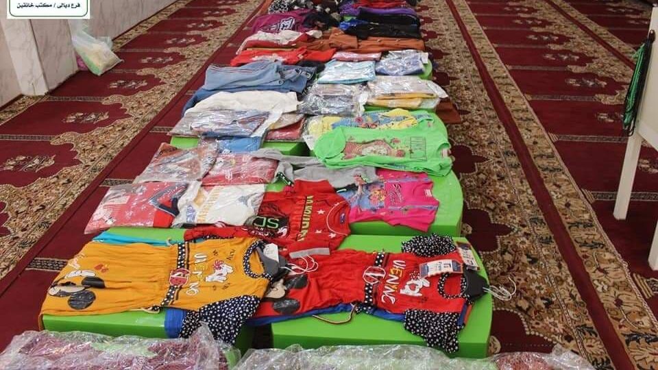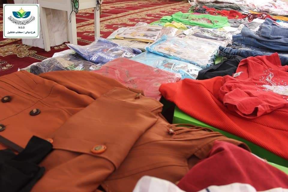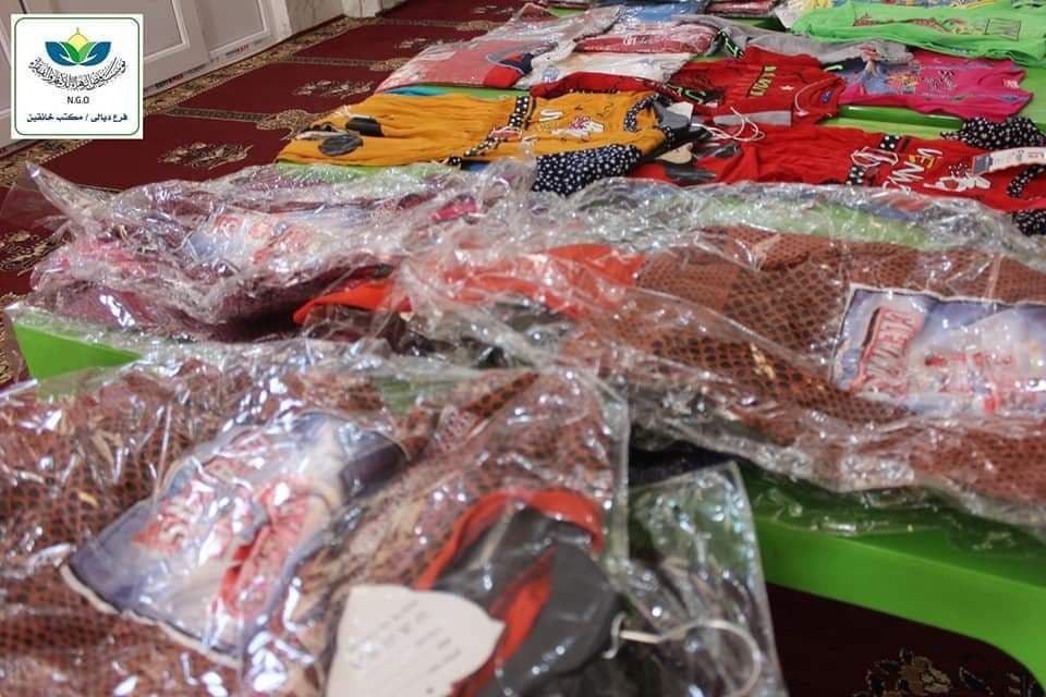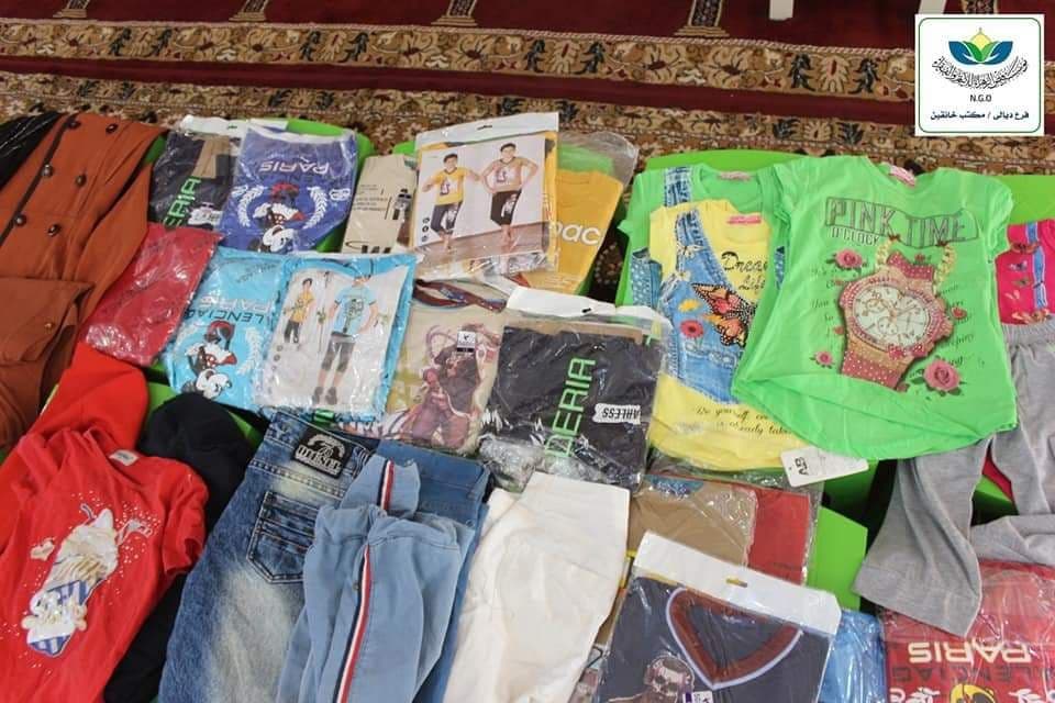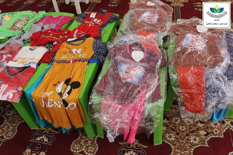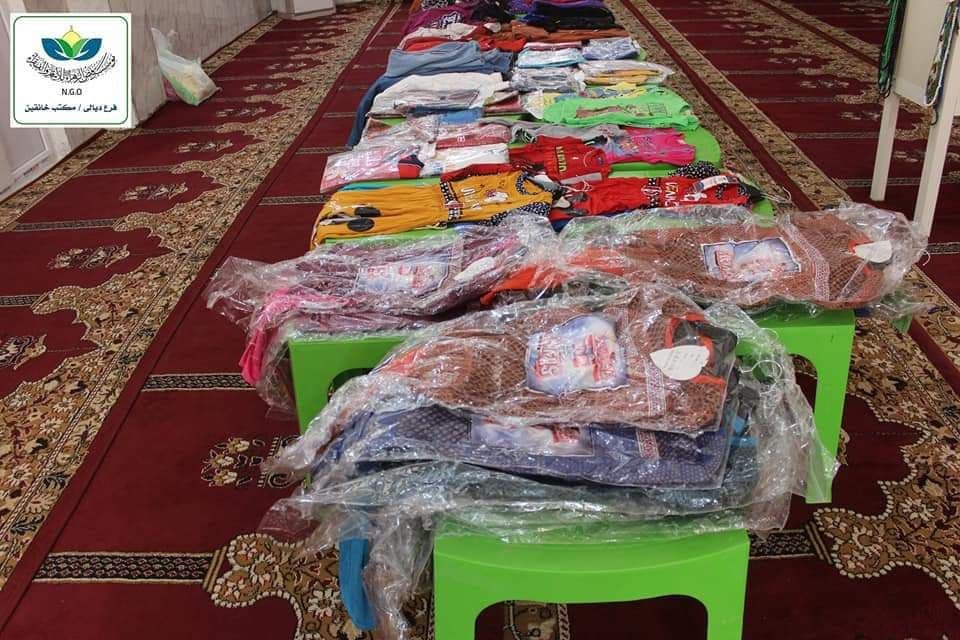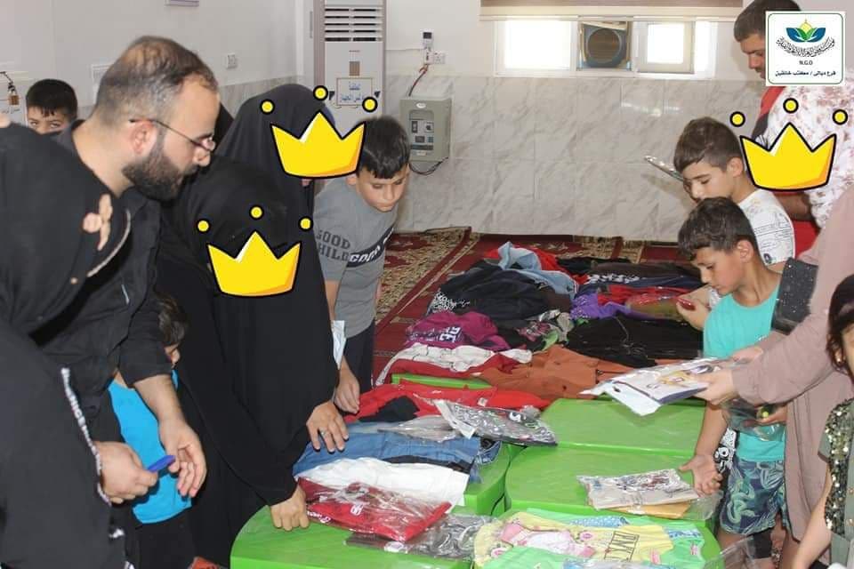٤_ توزيع الوجبة الأولى لكسوة عيد الأضحى المبارك والتي تمثلت بتجهيز ما يقارب (٤٠) طفل بالملابس الجديدة.
