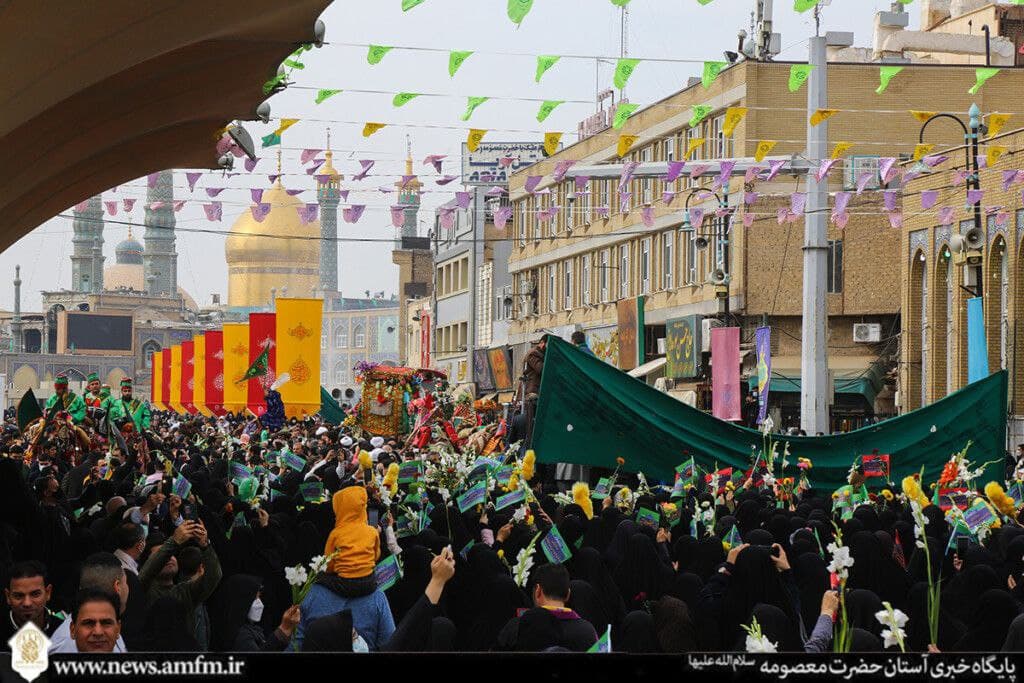 وذكرت التقارير، تابعتها “النعيم نيوز”. أن “أهالي المدينة وزائرو المرقد الشريف. وأوقدوا شموع الفرح وحملوا الورود واللافتات المعبّرة عن أفراحهم وسرورهم بالذكرى العطرة”.