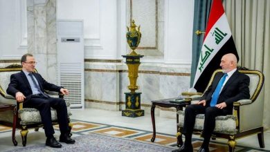 وذكر المكتب الإعلامي لرئاسة الجمهورية، في بيان تلقت “خليك ويانة” نسخة منه، أن “رئيس الجمهورية نزار آميدي، استقبل في قصر بغداد، وزير العمل والشؤون الاجتماعية أحمد الأسدي، والوفد المرافق له، الذين قدّموا التهاني والتبريكات للرئيس بمناسبة انتخابه رئيساً للجمهورية، متمنين له التوفيق في أداء مهامه، وأعرب الرئيس عن شكره وتقديره للتهاني والمشاعر الطيبة”.