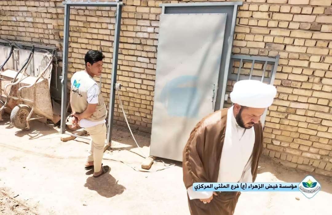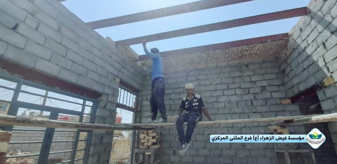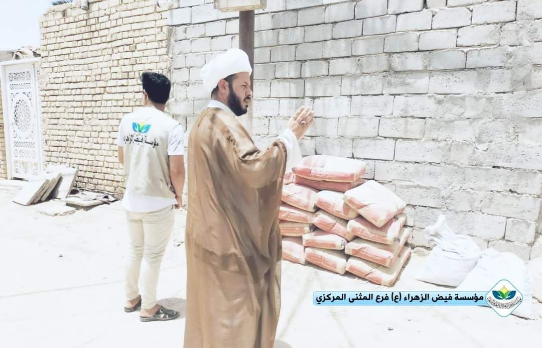 برعاية مكتب سماحة المرجع الديني الشيخ محمد اليعقوبي مؤسسة فيض الزهراء (ع) لرعاية الإيتام والفقراء فرع المثنى تقوم ببناء بيت لإحدى العوائل الفقيرة والمتعففة تسكن في غرفة من طين وحديد في مدينة السماوة.