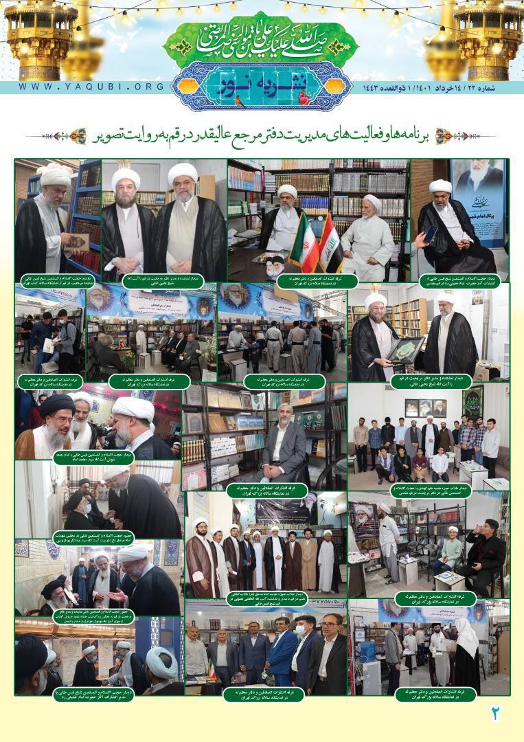 برعاية مكتب سماحة المرجع الديني اية الله العظمى الشيخ محمد اليعقوبي في قم اصدرت مؤسسة نور للترجمة و التحقيق و النشر نشرة نور العدد الثاني و العشرون باللغة الفارسية.