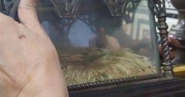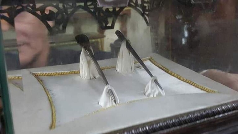 وذكر موقع “روسيا اليوم”، في تقرير اطلعت عليه “النعيم نيوز”، أن “المقتنيات النبوية بمسجد الحسين. تشتمل على سيف الرسول محمد، ويقال إن اسمه “سيف العضب”، وجزء من قميصه. بالإضافة إلى بقايا عصاه التي يقال إنها العصا التي دخل بها مكة. وكان يشير بها إلى الأصنام فتتحطم”، مضيفاً “وكذلك المكحلة والمرود. التي كان يكتحل بهما، وهناك أيضاً مصحف يعتقد أنه لعلي بن أبي طالب. وأربع شعرات من شعر رأس ولحية الرسول”.