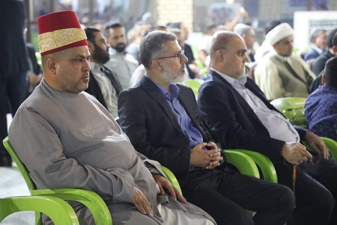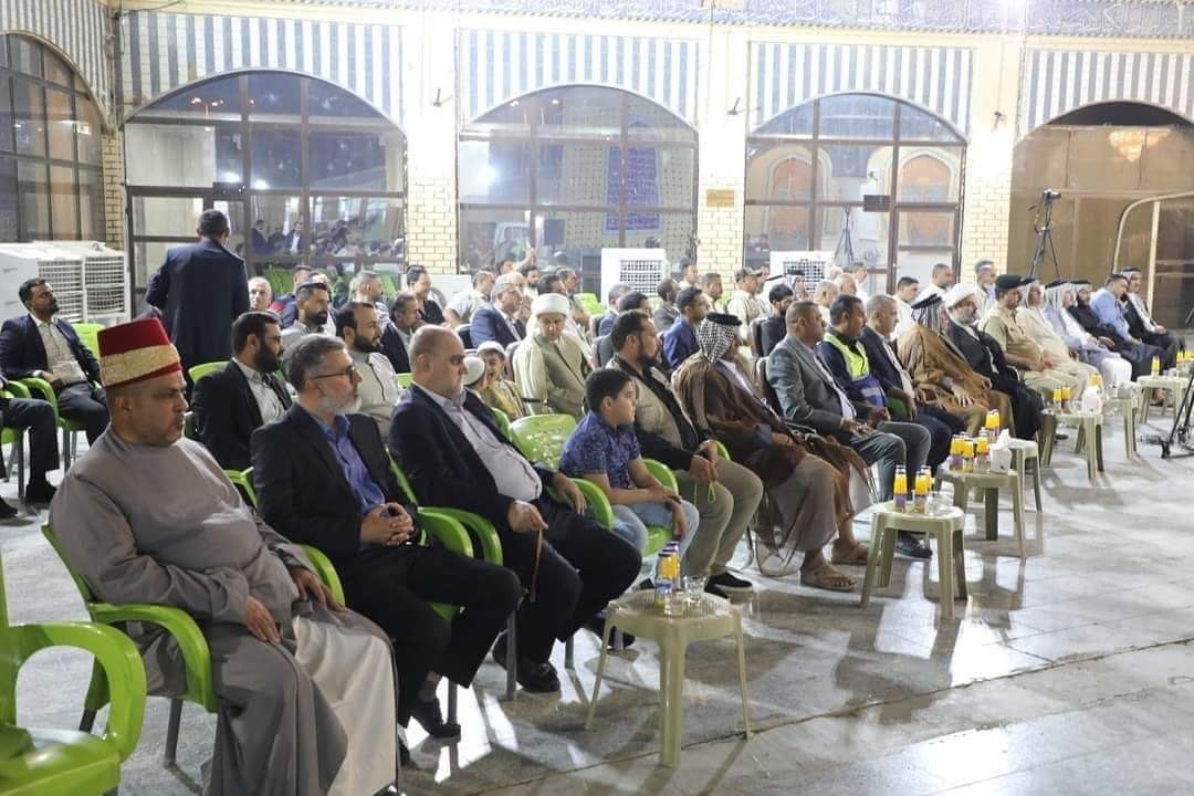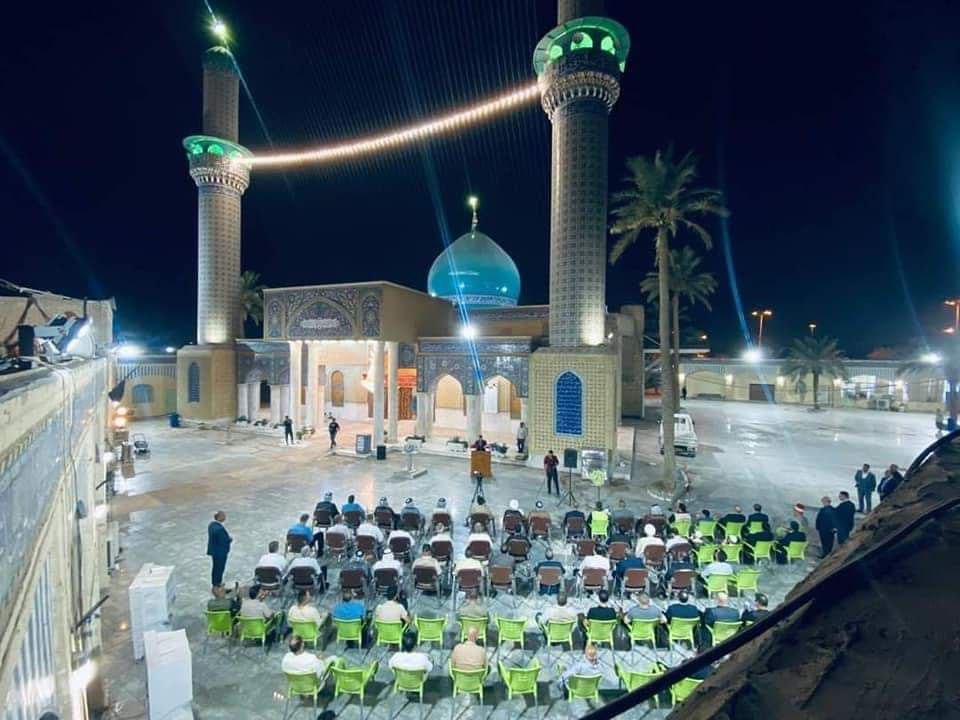 وأضاف، أن “الحفل استهل بقراءة آيات من الذكر الحكيم بصوت قارئ ومؤذن مزار السيدة شريفة بنت الحسن (عليها السلام)، قاسم عَجَّان، تلتها قراءة سورة الفاتحة على أرواح شهداء العراق الأبرار. لتتبعها الأناشيد والموشحات العقائدية الخاصة بالمناسبة الميمونة بصوت الملا مصطفى الگيم. خلال رفع الراية المباركة”.