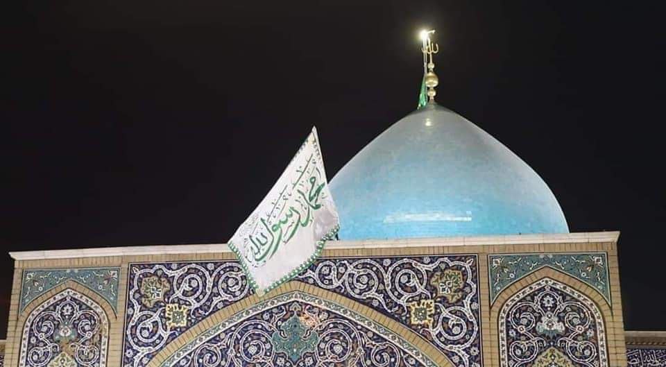 ‘ابتهاجاً بذكرى مولده المبارك‘.. رفع راية الرسول الأكرم في مزار ميثم التمار (الصور)