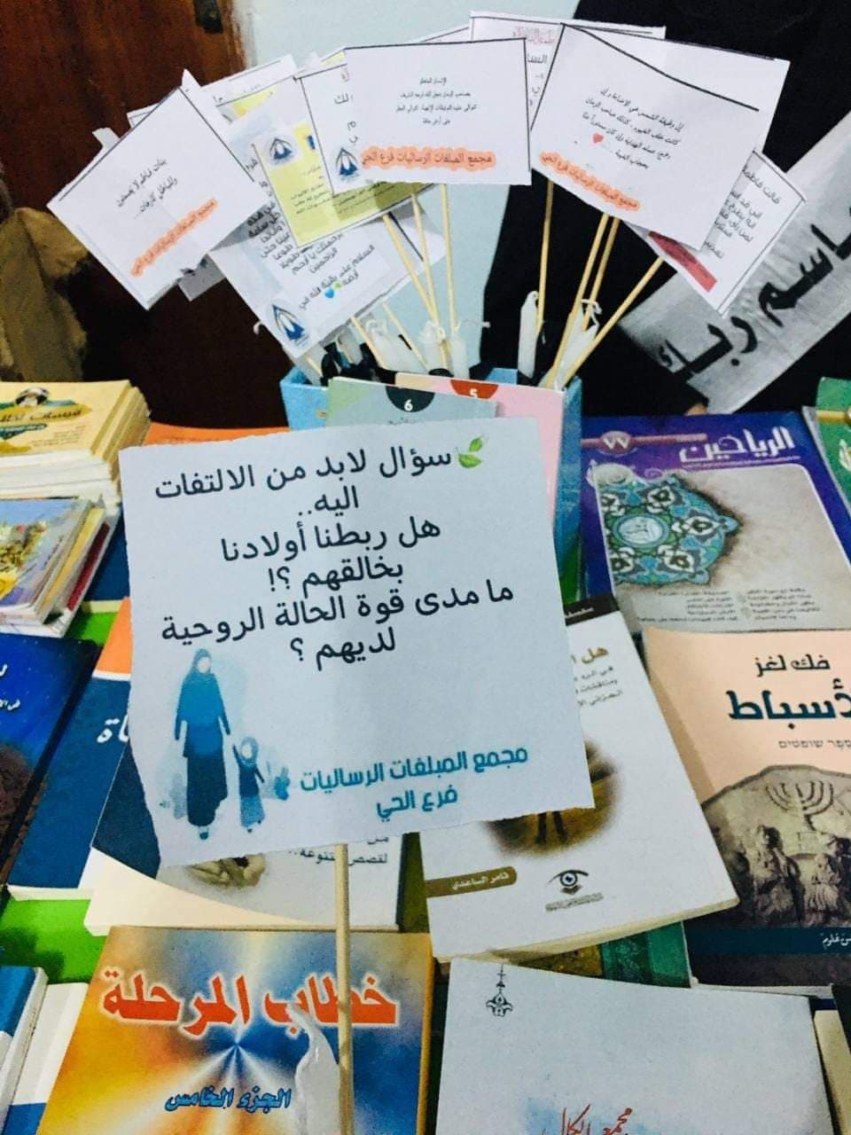 وتابع البيان، أنه “وقد تم إعداد أماكن خاصة بالمبلغات للإجابة عن الأسئلة الشرعية، وتصحيح قراءة سورة الفاتحة وأقيم ركناً للقراءة، أشرفت عليه مجموعة من المبلغات”.