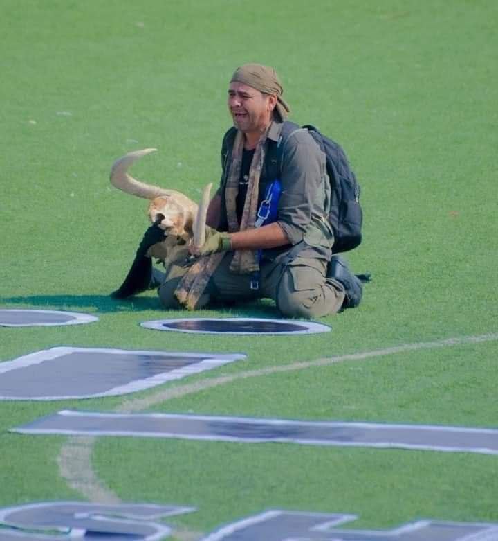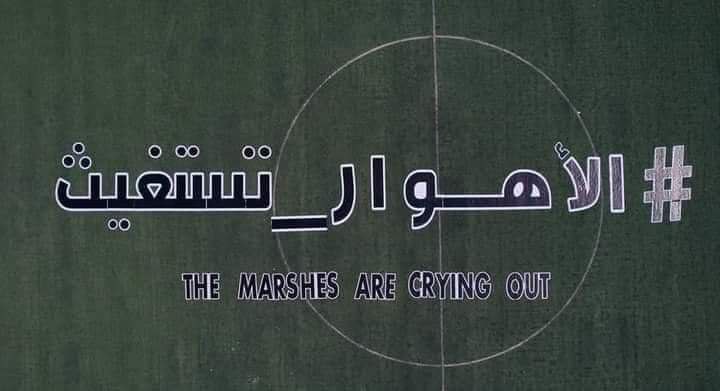 في مبادرة منه لتسليط الضوء على موجة الجفاف التي تواجه الأهوار، الناشط البيئي أحمد الساعدي يطبع وسماً بهاشتاگ الأهوار تستغيث، بطول ٥٠ متراً، على أرضية ملعب لكرة القدم في ناحية المشرح القريبة من الأهوار الشرقية.