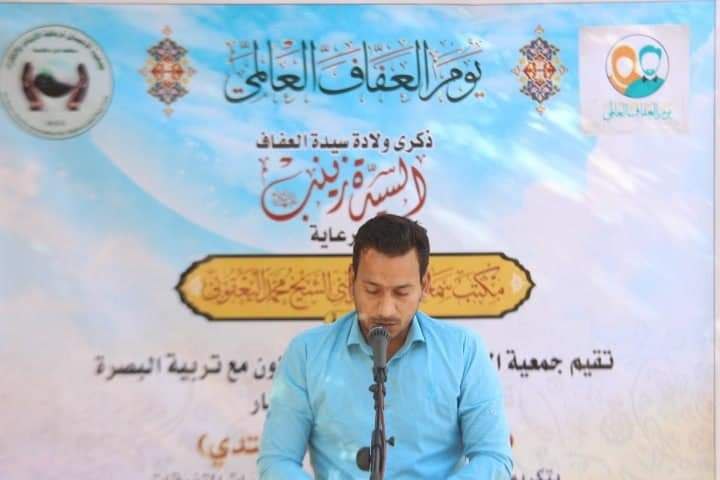 برعاية مكتب المرجعية في البصرة نظمت جمعية الاحسان الخيرية بالتعاون مع تربية البصرة احتفالا مدرسيا بمناسبة ولادة سيدة العفة زينب عليها السلام المتزامن مع يوم العفاف العالمي في ثانوية المشرق العربي للبنات.