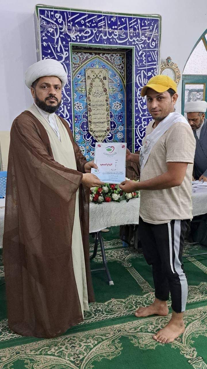 وتابع، “وتقوية الأواصر الأسرية والابتعاد عن العنف الأسري والتفكك الأسري، ضرورة التواصل مع المرجعية من خلال مشاريعها المباركة”، مشيراً إلى أنه “وختاماً تم توزيع هدايا مركز البيت السعيد للتنمية الأسرية، على المتزوجين والمتزوجات الجدد”.