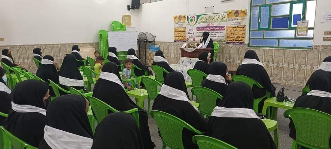 وأكمل، “مع محاضرة نسوية لعضو مجمع المبلغات والمنتسبة بجامعة الزهراء النسوية، الأستاذة رقية فاضل عبد الحسن. وسماع بعض المشاكل من المتزوجين الجدد، ووضع الحلول لها وكيفية التعامل معها. وتم إضافتهم لگروب التلجرام ليستفادوا منه في حياتهم الزوجية”.