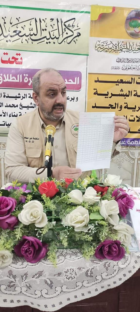 وأضاف البيان، “حيث أبتدأ المحاضرة مدير المؤسسة الأستاذ نشوان الخفاجي، وقدم نبذة تعريفية عن عمل المؤسسة ومهام عملها. وبعدها محاضرة قيمة لعضو مؤسسة البيت السعيد ومسؤول العلاقات الاجتماعية وإصلاح ذات البين، الشيخ حيدر القريشي”.