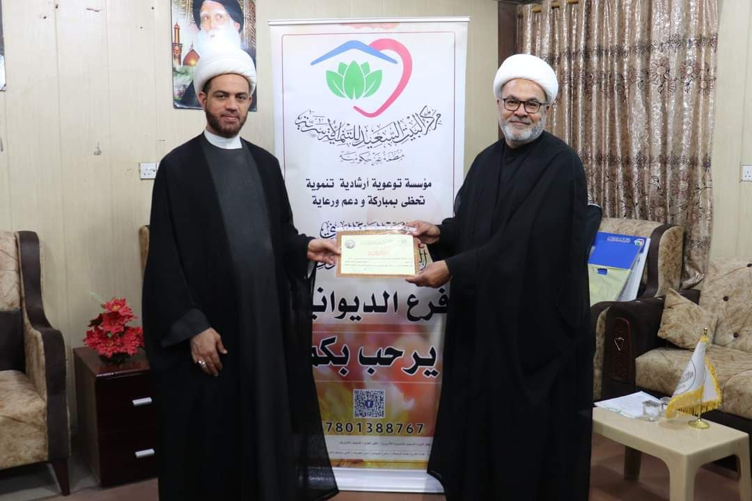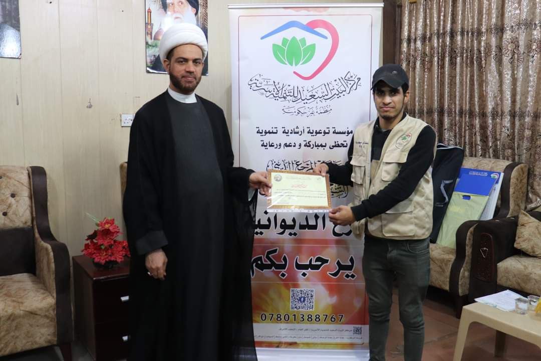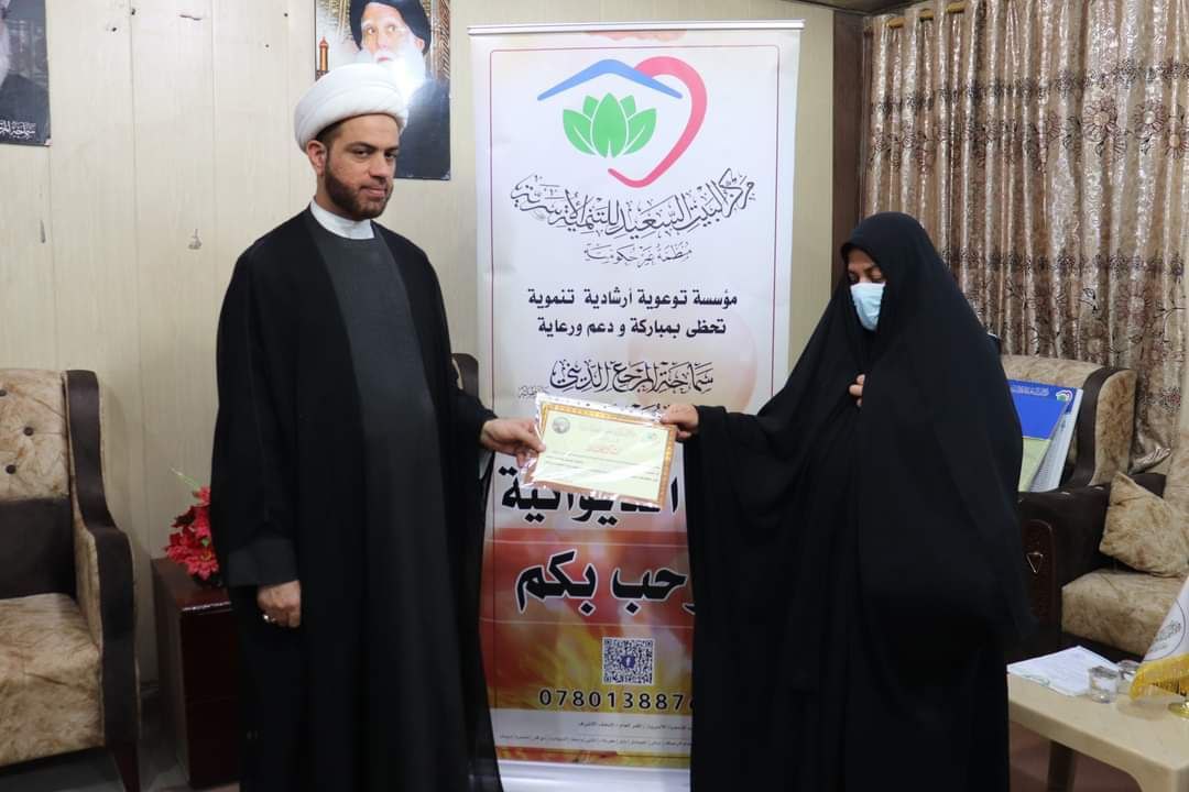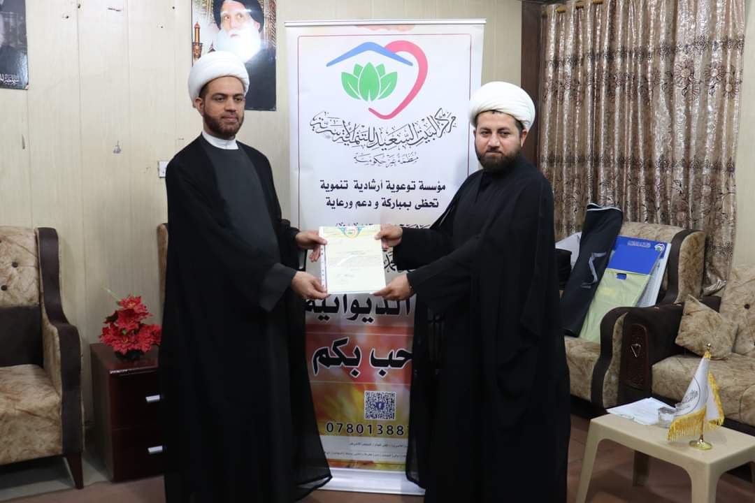 وقام المعاون الإداري الشيخ بهاء الاسدي بتقديم كتاب شكر وتقدير لادارة مركز البيت السعيد للتنمية الأسرية فرع الديوانية عرفانا وتقديرا لما يبذلوه من عطاء مستمر.