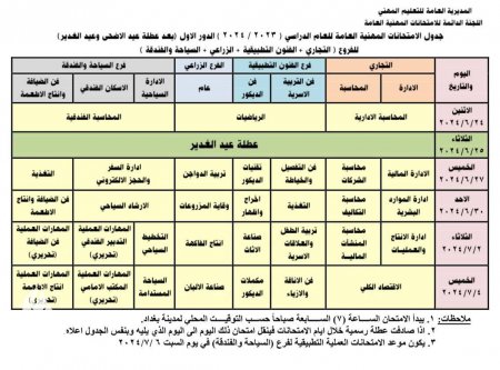 أعلنت وزارة التربية، اليوم السبت، عن الجدول الجديد للامتحانات المهنية العامة بعد تضمينه عطلة عيد الغدير.