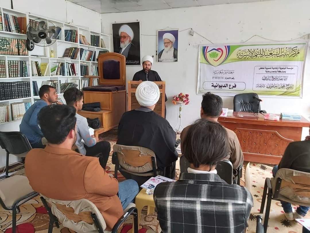 وذكر المركز، في بيان تلقت “النعيم نيوز” نسخة منه، أن “الحفل ابتدأ بكلمة ترحيبة لمسؤول مركز البيت السعيد الشيخ حيدر الكناني. حيث تطرق إلى أن الشريعة الإسلامية أولت اهتماماً بالغاً بصيانة وصلاح اللبنة الأساسية في المجتمع. ألا وهي الأسرة، والتي تعد من الدعامة الرئيسية للمجتمع، وعليها تقع مهمة إعداد الأجيال”.