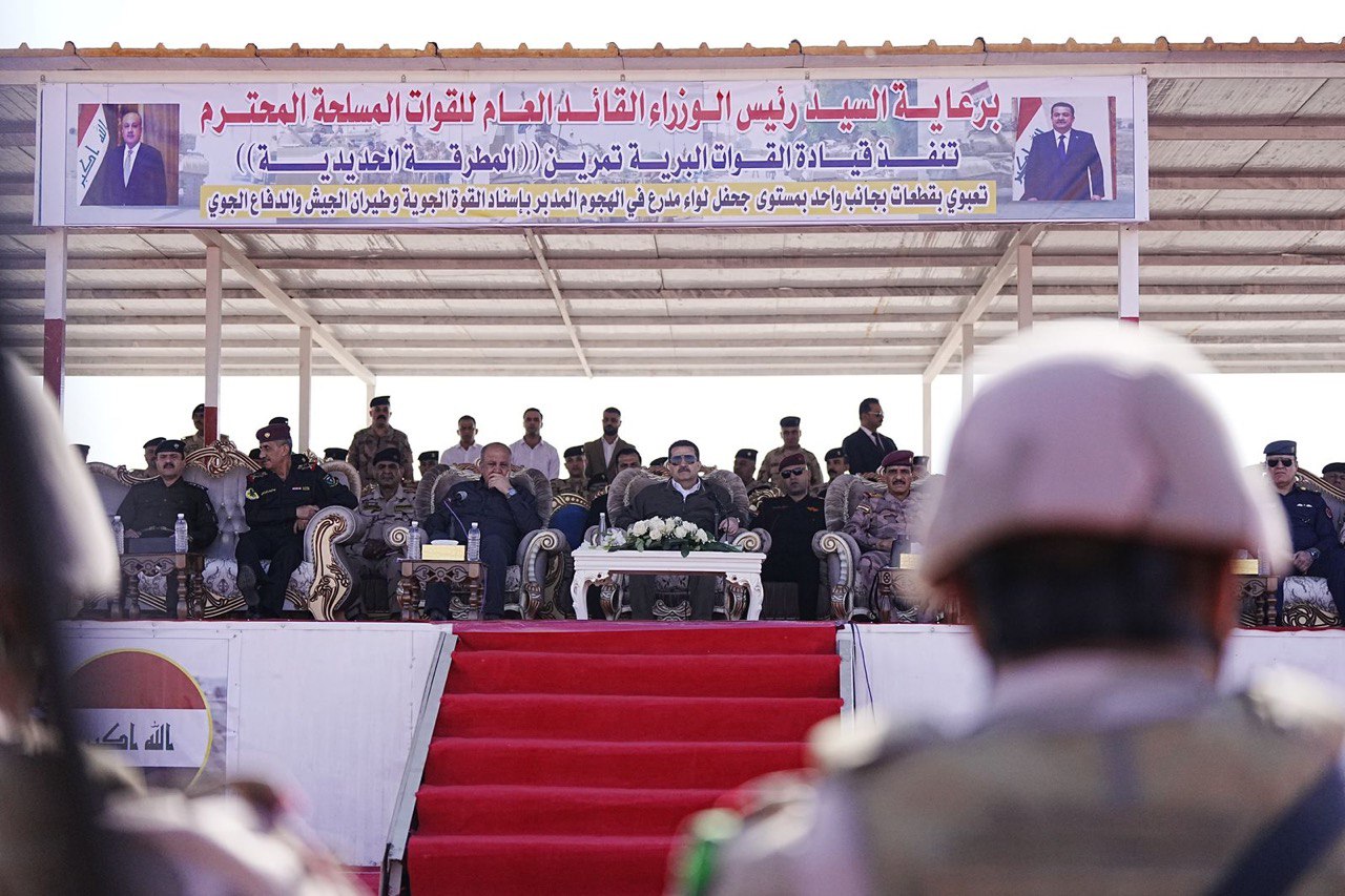 وذكر المكتب الإعلامي لرئيس مجلس الوزراء، في بيان تلقت “المعالي نيوز” نسخة منه، أن “القائد العام للقوات المسلحة محمد شياع السوداني، حضر صباح اليوم، تمرين (المطرقة الحديدية) التعبوي في الهجوم المدبّر، الذي نفذته قيادة القوات البرية/ الفرقة المدرعة التاسعة في الجيش العراقي، بمشاركة طيران الجيش والدفاع الجوي وقيادة القوة الجوية”.