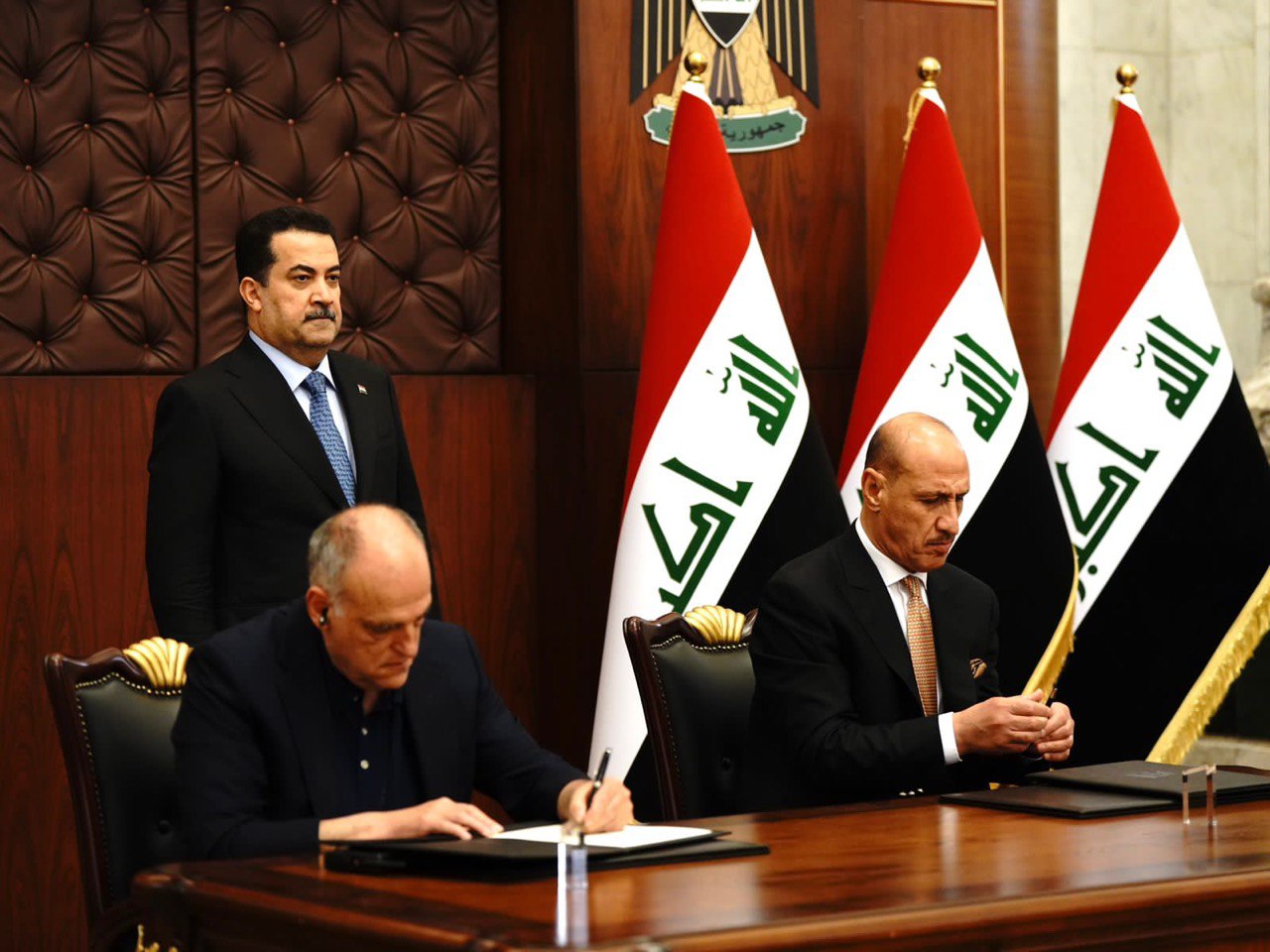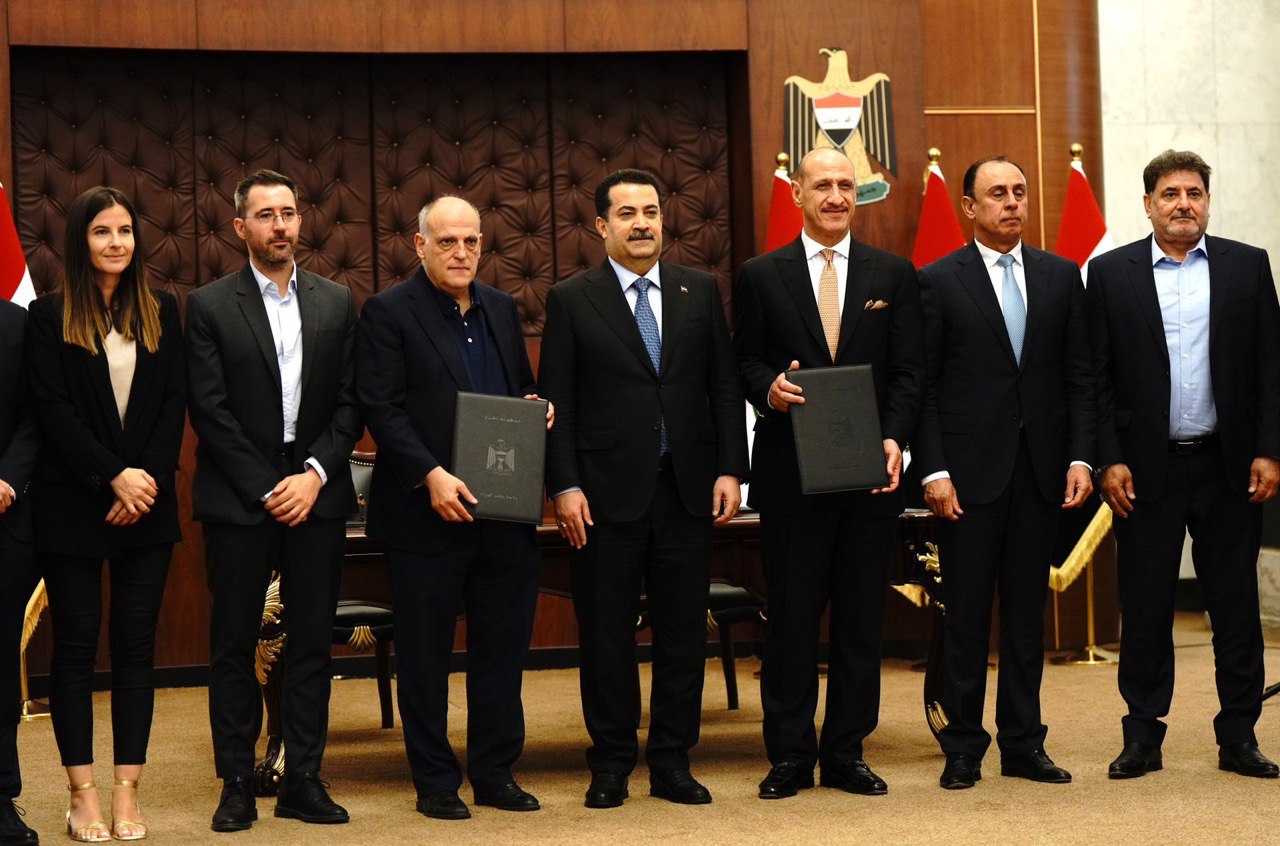 رعى رئيس مجلس الوزراء، محمد شياع السوداني، اليوم الأحد، توقيع عقد الشراكة بين الاتحاد العراقي لكرة القدم، ورابطة الدوري الإسباني “لاليغا”.