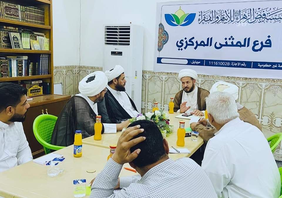 الشيخ السماوي يجتمع بمدراء مكاتب فيض الزهراء (ع) في أقضية ونواحي المثنى