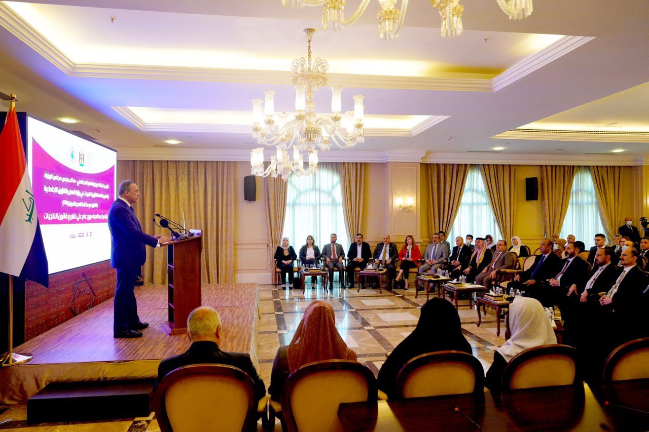 ووفقا للكاظمي، فإن “المطلوب من القوى السياسية ان تعيد حساباتها لكي نعبر هذه المرحلة، اليوم هناك أزمة عالمية، تنعكس على كل بقعةٍ من بقاع العالم، وإلى جانب هذه الأزمة، لدى منطقتنا ما يكفي من الأزمات المعقّدة والمتشابكة، هذا المشهد مظلم نعم، لكن هناك أمل، ويمك أن نحول المشهد إلى فرصة نجاح وهناك فرصة، وهذه الفرصة لا يمكن أن تترجم بشكلٍ عملي بحكومة تصريف أعمال”.
