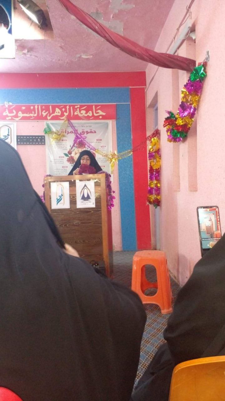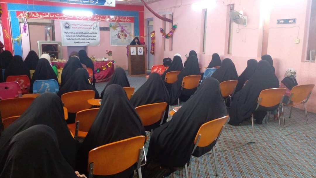 وذكر المحمع في بيان تلقت “النعيم ينوز” نسخة منه، أنه “ابتدأ الحفل بتلاوة عطرة من القرآن الكريم بصوت الأستاذة سناء عبد الحمزةوبعدها كلمة لمديرة الجامعة الست هيفاء طالب وبعدها كلمة لمديرة المجمع الست حوراء شاكر وفقرة سؤال وجواب للمبلغة نجيحه فليح”.