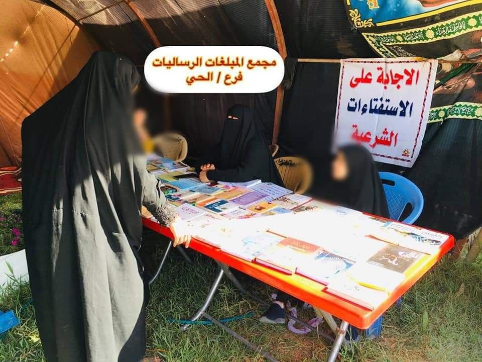 وتم تقسيم المبلغات الرساليات الى مجموعات وفرق على المواكب الموجودة في الطريق. حيث قمنَ بفعاليات وأنشطة متعدد منها مخيم الوعي والإرشاد الذي ضم معرض للكتاب. والاجابة على الأسئلة الشرعية وتصحيح العبادات ومفرزة طبية.