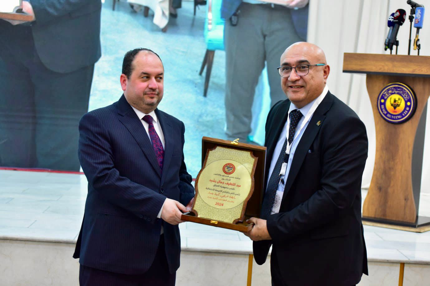 واستلم المحمداوي، درع تكريما من الرابطة نيابة عن رئيس الجمهورية تقديرًا لدعمه لرابطة كلية بغداد. مشيراً، إلى أن الحدث شكّل فرصة لتأكيد العزم المشترك على الحفاظ على الإرث التعليمي والثقافي لكلية بغداد وتعزيز مكانتها كمؤسسة تعليمية رائدة وتراثية.