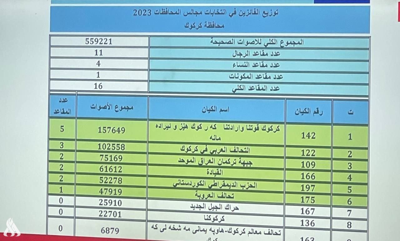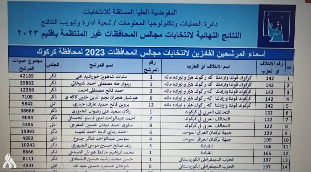 أعلنت المفوضية العليا المستقلة للانتخابات، مساء اليوم الخميس، النتائج النهائية لانتخابات مجالس المحافظات وجاءت كالتالي: