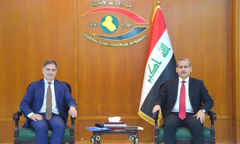 وذكر بيان للهيئة تلقت “خليك ويانة” نسخة منه، أن “رئيس هيئة النزاهة الاتحاديَّـة، محمد علي اللامي، استقبل في مقر الهيئة، سفير الاتحاد الأوروبي لدى جمهوريَّة العراق، توماس سيلر والوفد المرافق له، وبحث الجانبان سبل تعزيز آليات التعاون والشراكات الدوليَّة مع المُنظَّمات المُتخصّصة بمكافحة الفساد”.