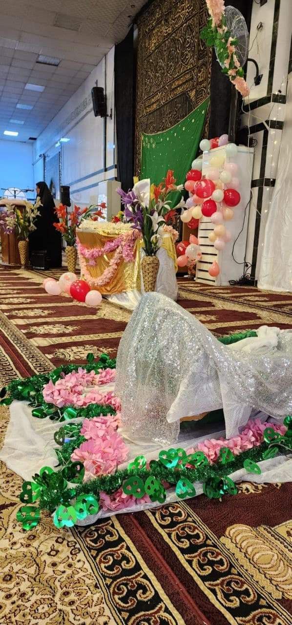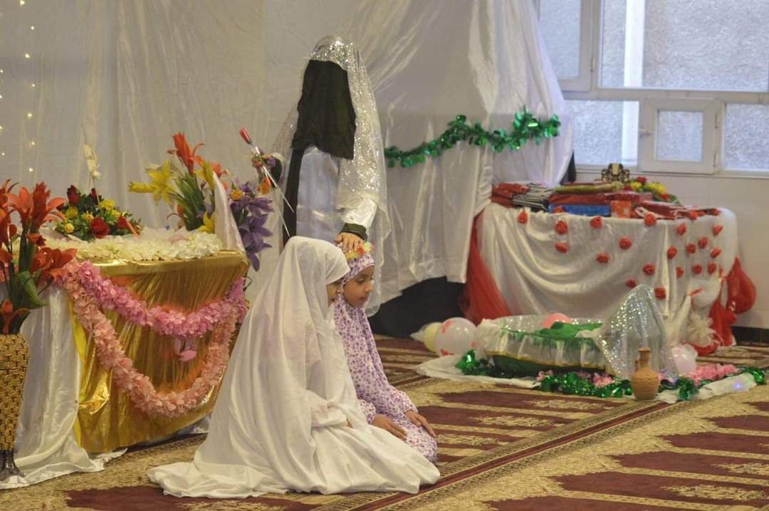 الاستاذة امل المياحي تمثيل مشهد ولادة الزهراء (ع ) قامت به مجموعة من طالبات جامعة الزهراء (ع) ومشهد الولادة خادمة الحسين (ع ) : اخلاص برهان وقصة جُسدت بالتمثيل بين الهداية والضلال نفذتها طالبات الجامعة.