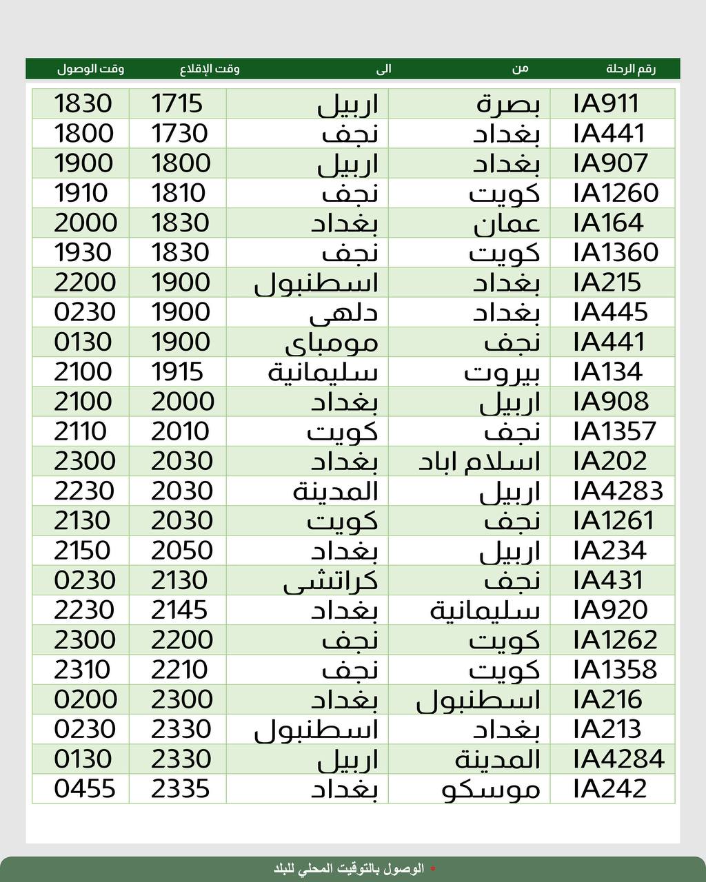 أعلنت شركة الخطوط الجوية العراقية، اليوم الاثنين، عن جدول رحلاتها الداخلية والخارجية ليوم غدٍ الثلاثاء.