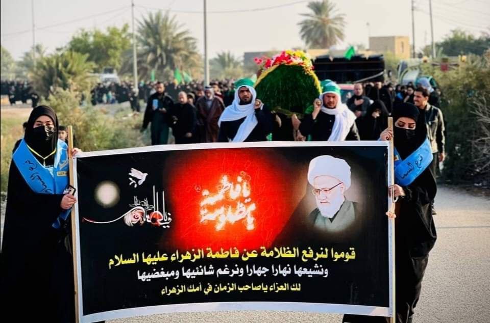 أقام موكب جامعة الزهراء للتبليغ والعلوم الإسلامية فرع السماوة مع مجمع المبلغات الرساليات التشييع الرمزي السنوي لنعش السيدة الزهراء (ع) للسنة الرابعة عشر على التوالي.برعاية مكتب سماحة المرجع الديني الشيخ محمد اليعقوبي في المثنى وبالتعاون مع مؤسسة أئمة البقيع (ع)
