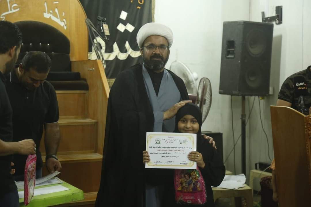 وأضاف، أنه “ساهم في المحفل: مقدم الحفل السيد مصطفى الشرع وعدد من الفتيات”، مشيراً إلى أنه “وفي ختام المحفل وزعت الشهادات التقديرية والهدايا للمشاركين في الدورات الصيفية، التي تساهم في نشر الوعي الديني والإنسانية”.