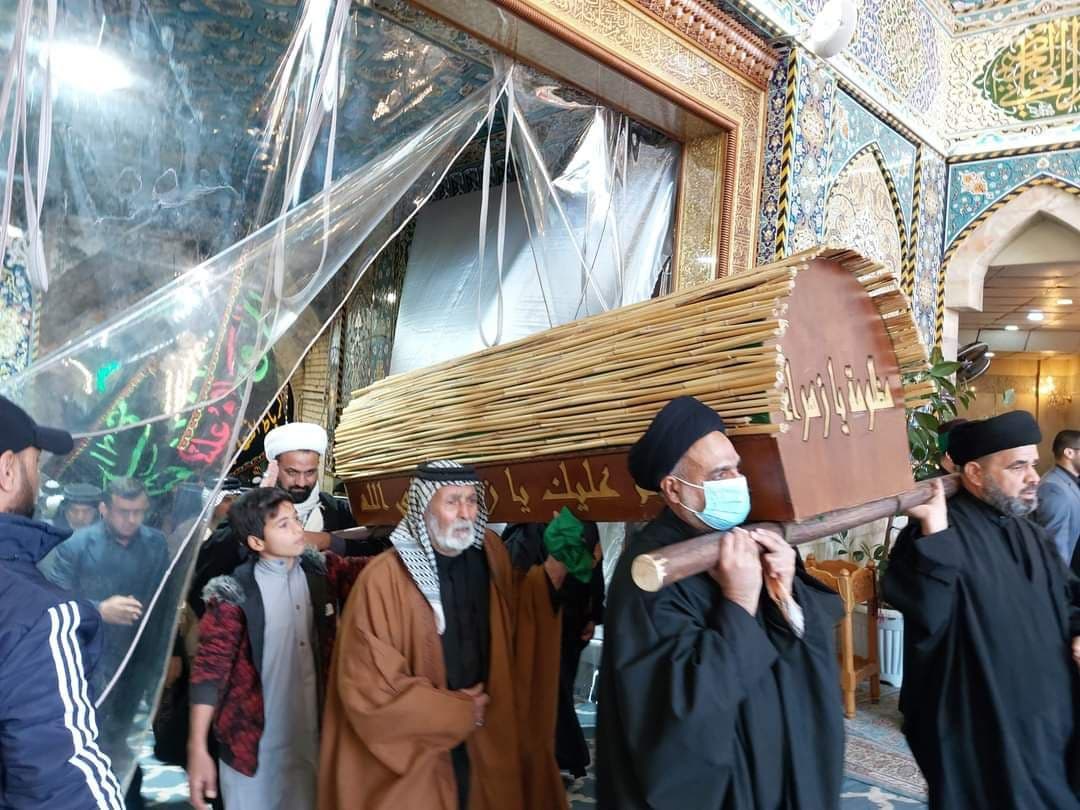 رفعت جماهير ومواكب محافظتي البصرة وكربلاء، اليوم الجمعة، النعش الرمزي للصديقة فاطمة الزهراء (عليها السلام) في ذكرى شهادتها الثالث من جمادى الآخرة.