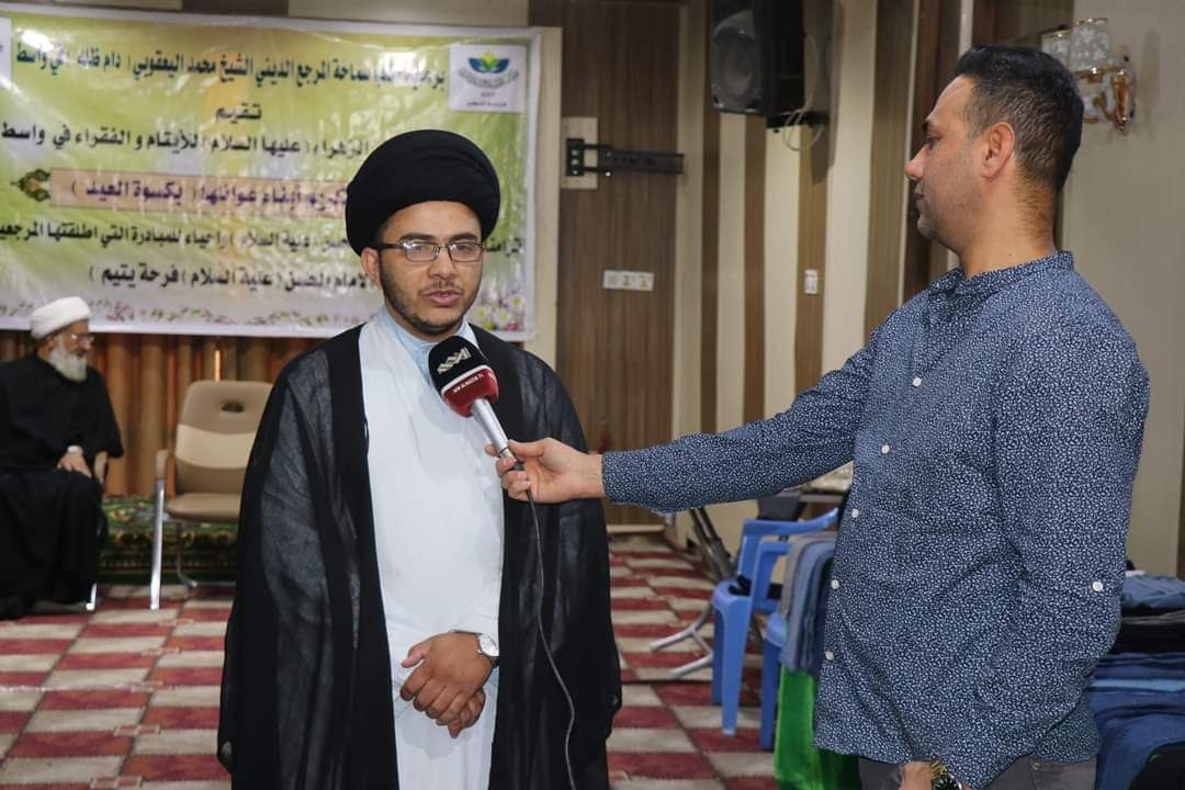 أطلقت مؤسسة فيض الزهراء (ع) الإنسانية، وبرعاية مكتب سماحة المرجع الديني الشيخ محمد اليعقوبي في واسط، اليوم السبت، مبادرة ‘الإمام الحسن فرحة يتيم‘، لتوزيع كسوة العيد على الأيتام والفقراء.
