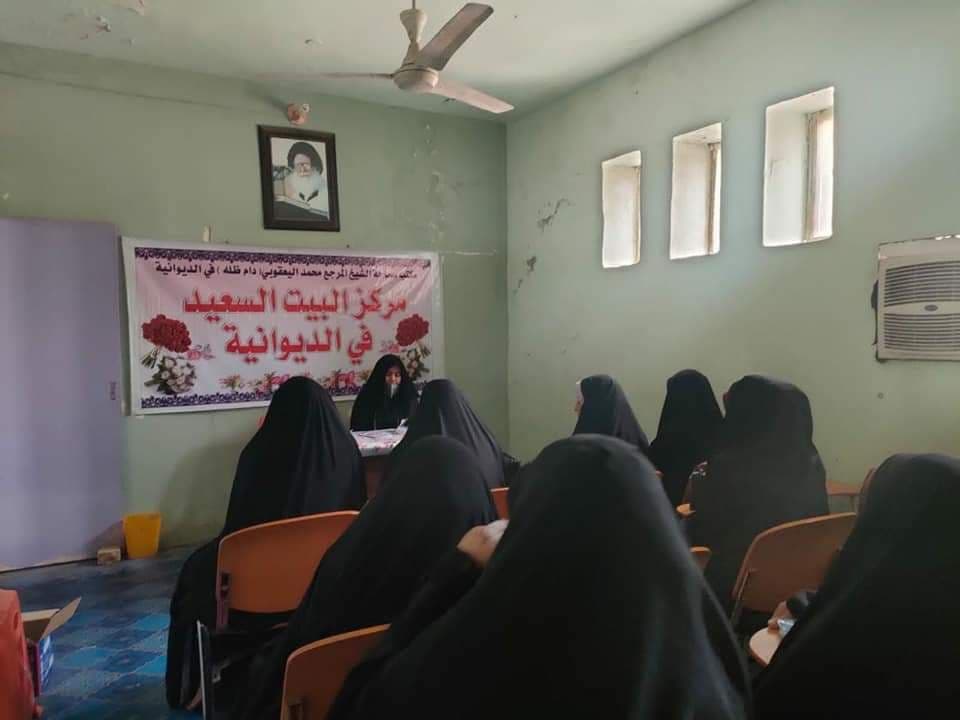 وأشار المركز، إلى أن “لجنة الدعم والإرشاد النسوي/لجنة المربيات الفاضلات، أقامت المحاضرة الخاصة بالنساء الكوادر النسوية الخاصة بمركز البيت السعيد للتنمية الأسرية في الديوانية، محاضرة للمتزوجات الجدد وكانت المحاضرة للحاجة أم حيدر، وبعد انتهاء المحاضرة تم توزيع هدية المرجعية على المتزوجات”.