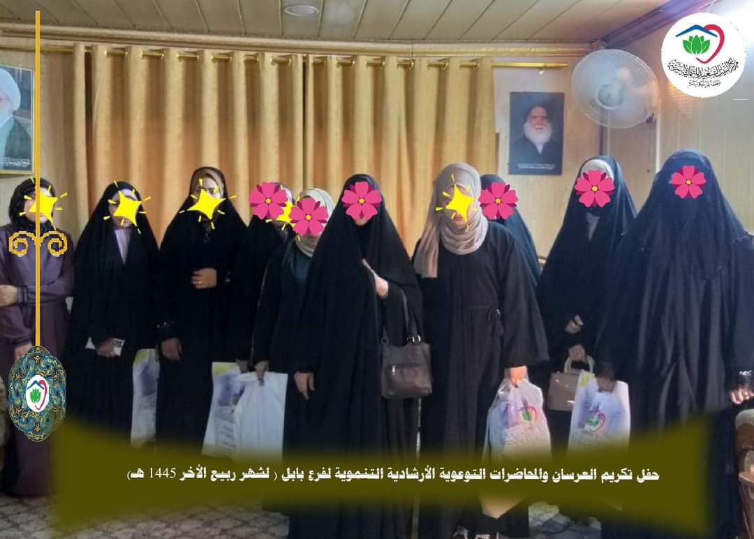وتابع، “كما تضمن الحفل محاضرة للجانب النسوي ألقتها المربيات الفاضلات تحت عنوان (الأسرة الناجحة)، بيّنت من خلالها مقومات الأسرة الناجحة، بالإضافة إلى توزيع الهدايا على العرسان والمقدمة من مكتب سماحة المرجع الديني آية الله العظمى الشيخ محمد اليعقوبي في النجف الأشرف”.