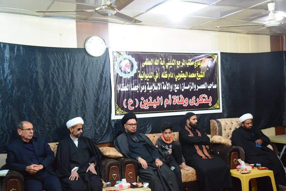 أقام مكتب سماحة المرجع الديني آية الله العظمى الشيخ محمد اليعقوبي (دام ظله) في الديوانية، أمس الأحد، مجلس عزاء، بذكرى وفاة السيدة الجليلة ناصرة العترة الطاهرة أم البنين (ع).