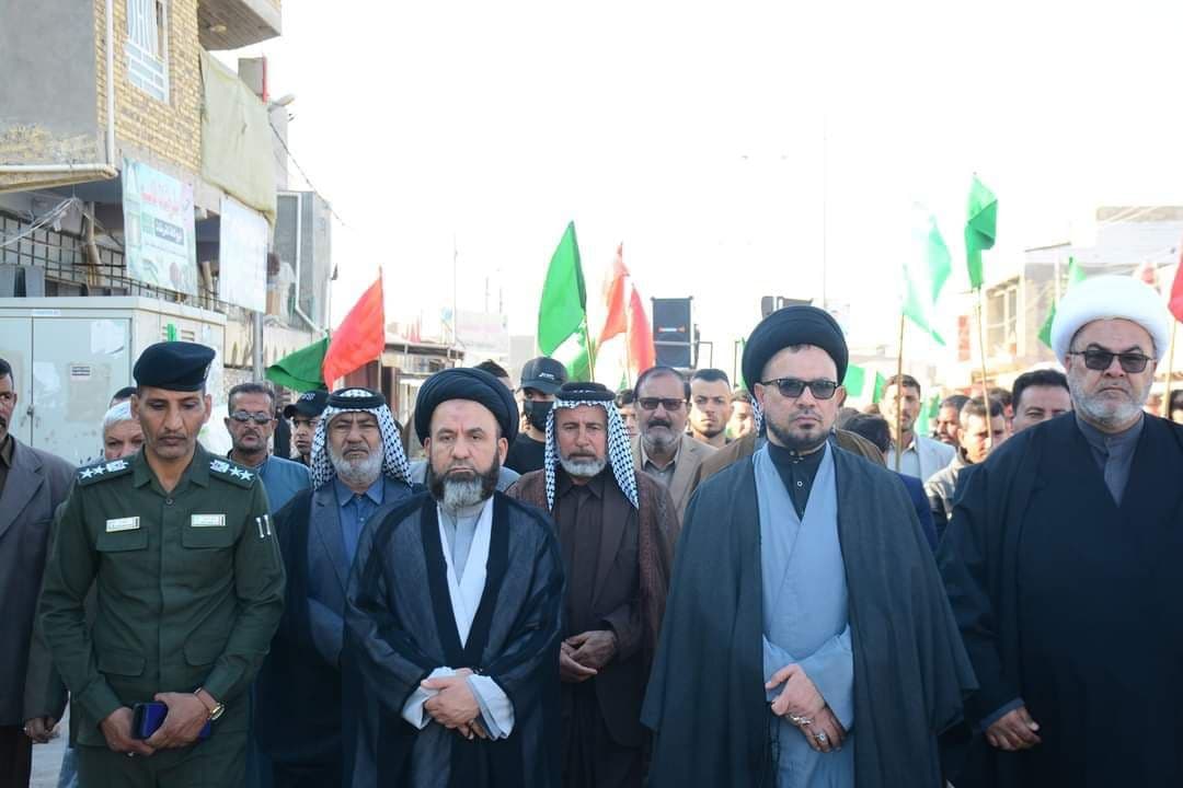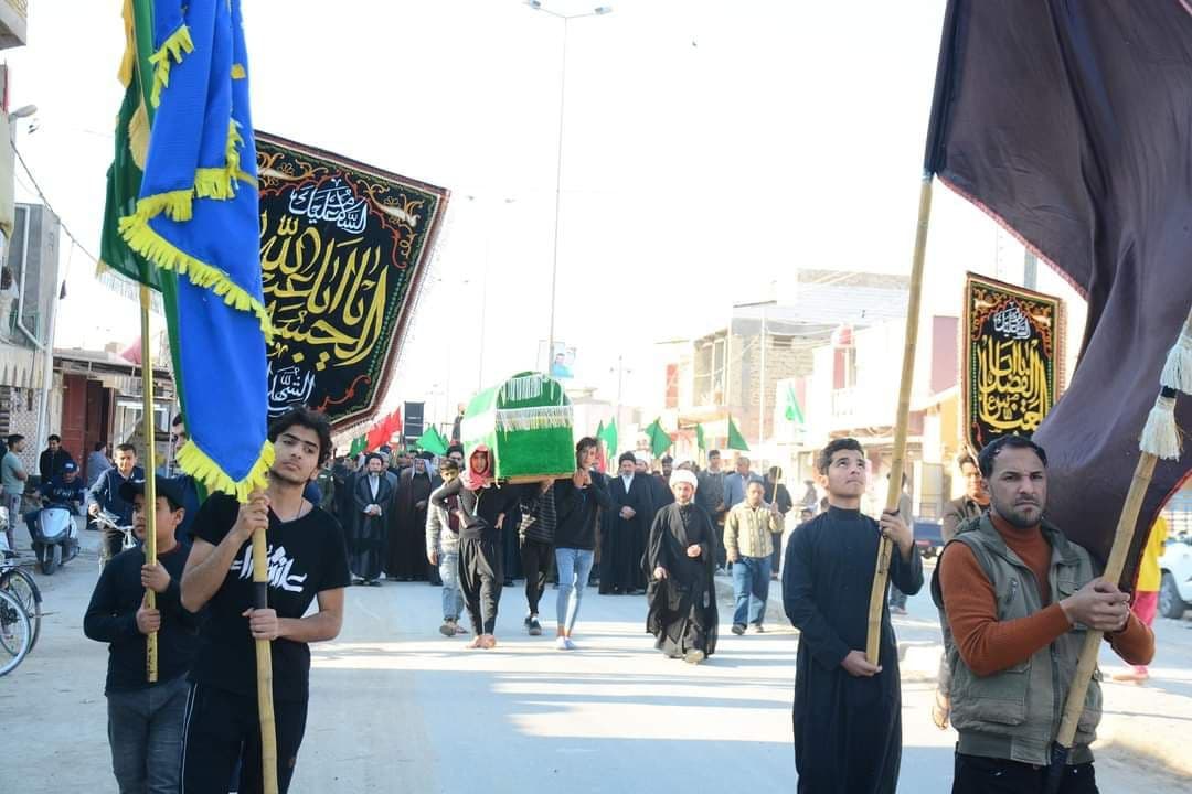 بالصور.. مكتب المرجع اليعقوبي في الديوانية يشارك بالتشييع الرمزي لنعش العقيلة زينب (ع)