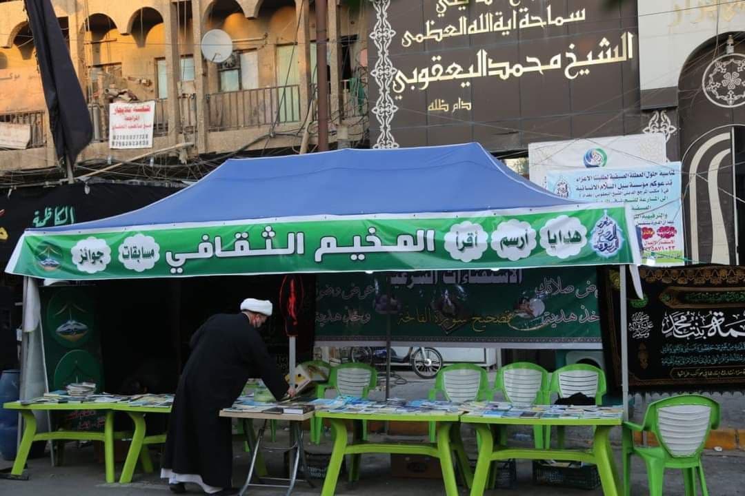 أقام مكتبُ سماحة المرجع الديني الشيخ محمد اليعقوبي في بغداد/الكرخ، أمس الأحد، المخيم الثقافي للوعي والإصلاح، لإحياء نهضة الإمام الحسين (ع) بشكل واعي، بمدينة الكاظمية المقدسة/منتصف شارع النواب.
