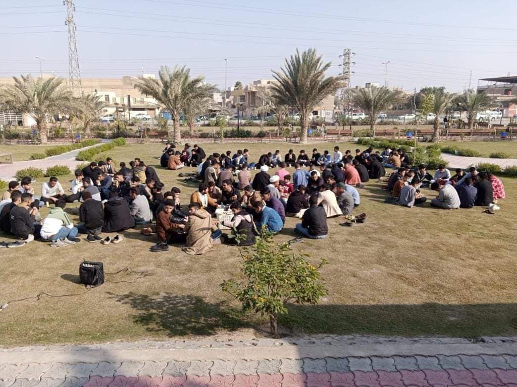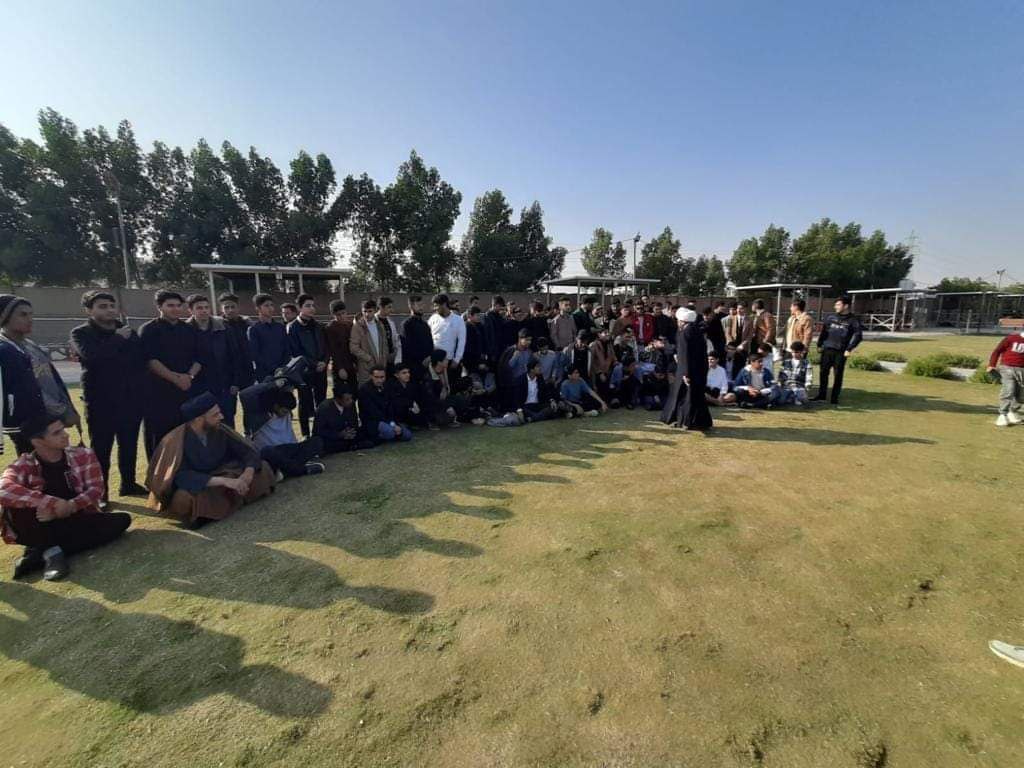 نظم فضلاء الحوزة العلمية والمربين والأساتذة زيارة تثقيفية توعوية وترفيهية مع ثلة من الشباب الاكادمي الرسالي من طلبة الصف الخامس العلمي/ اعدادية حسين علي محفوظ للبنين في النجف الاشرف.بمشاركة ١٥٠ طالباً.