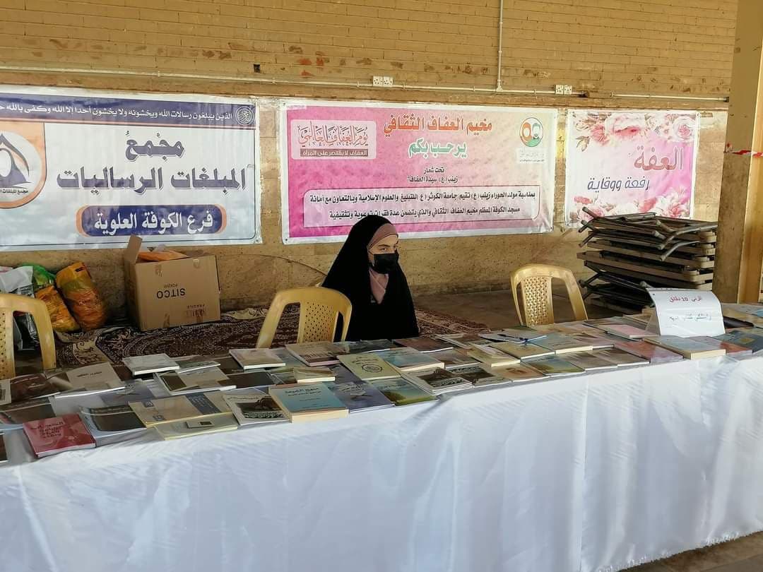 افتتح مجمع المبلغات الرساليات في الكوفة العلوية وبالتنسيق بين مكتب سماحة المرجع الديني الشيخ محمد اليعقوبي وأمانة مسجد الكوفة المعظم، أمس الأحد، المخيم الثقافي، بمناسبة ذكرى ولادة السيدة زينب (ع) يوم العفاف العالمي.