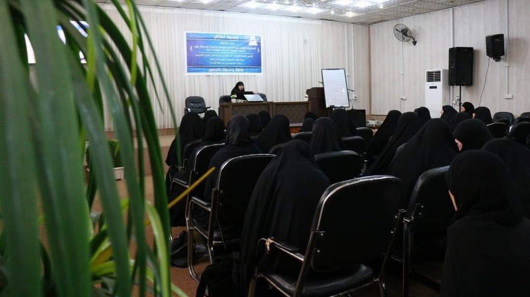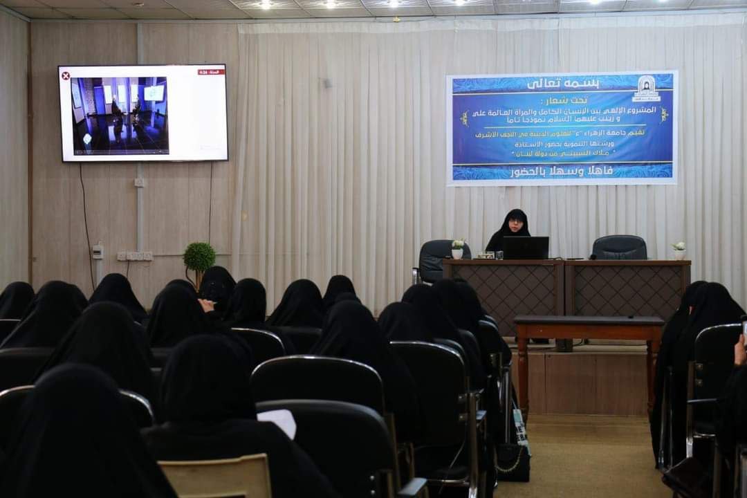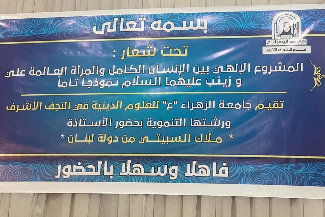 وذكر بيان للجامعة، تلقت “النعيم نيوز” نسخة منه، أنه “تحت شعـار: «المشروع الإلهـي بين الإنسـان الكـامل والمرأة العــالمة علـي وزيـنـب عليهما الـسلام نـموذجـاً تـاماً»، أقامت جامعة الزهراء (عليها السلام) للعلوم الدينية في النجف الأشرف، ورشتها التنموية بحضور الأسـتاذة مـلاك الـسبيتي من لبنان”.