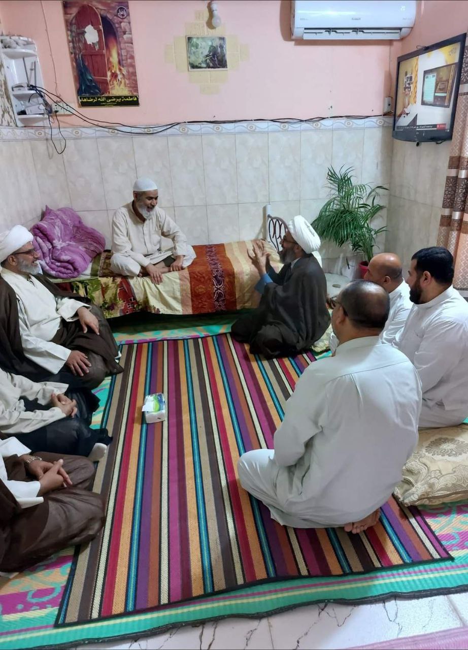 جامعة باقر العلوم الدينية في البصرة والوفد المرافق له يلتقي الشيخ وصفي الحريشاوي للاطمئان على صحته.