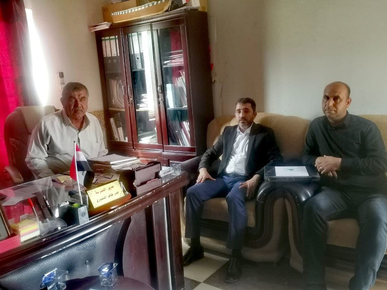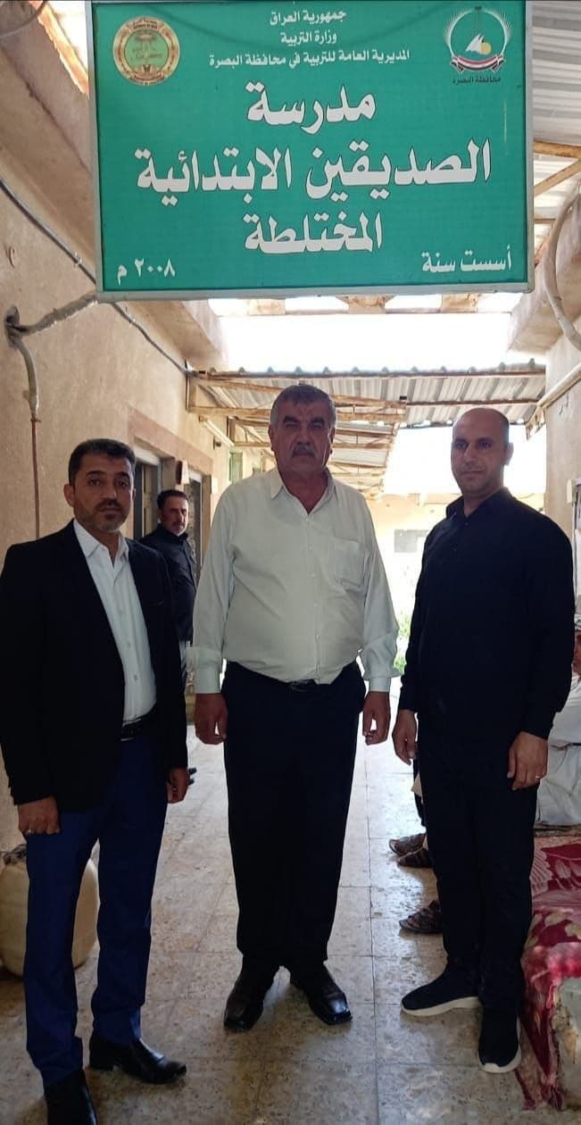 وأضاف البيان، أن “حيدر ظاهر المنصوري مدير مدرسة الصديقين، استقبل، مدير مكتب الأهوار السيد حسين أبو طبيخ والوفد المرافق معه بمكتبه في محافظة البصرة/قضاء الهارثة ناحية الأهوار”.