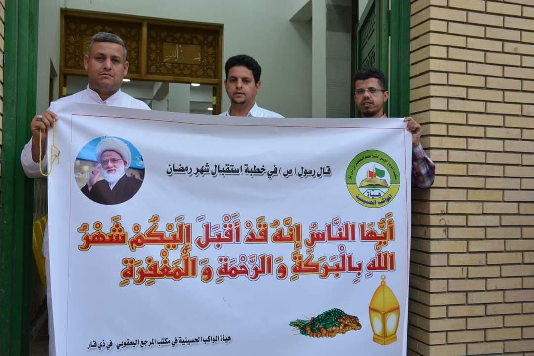 نظّم مكتب المرجع الديني الشيخ محمد اليعقوبي (دام ظله)، اليوم السبت، في ذي قار وقفة إيمانية في شارع الحبوبي وسط مدينة الناصرية إحتفاءً بقدوم شهر رمضان المبارك.