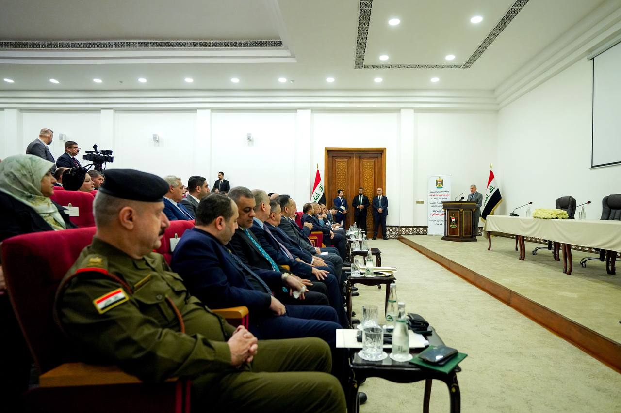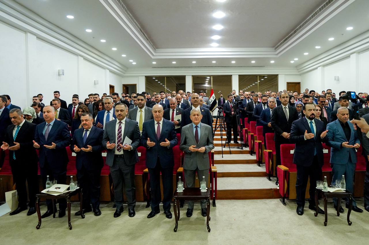وذكرت الرئاسة في بيان، تلقت “المعالي نيوز” “واستهلت أعمال الورشة، التي حضرها فخامة رئيس الجمهورية الدكتور عبد اللطيف جمال رشيد، ومعالي وزير البيئة السيد نزار ئاميدي، ومعالي رئيس الديوان السيد كامل الدليمي وعدد من المستشارين والمسؤولين في رئاسة الجمهورية، بتلاوة معطرة من أي الذكر الحكيم ثم وقف الحاضرون لقراءة سورة الفاتحة على أرواح شهداء العراق وفلسطين”.