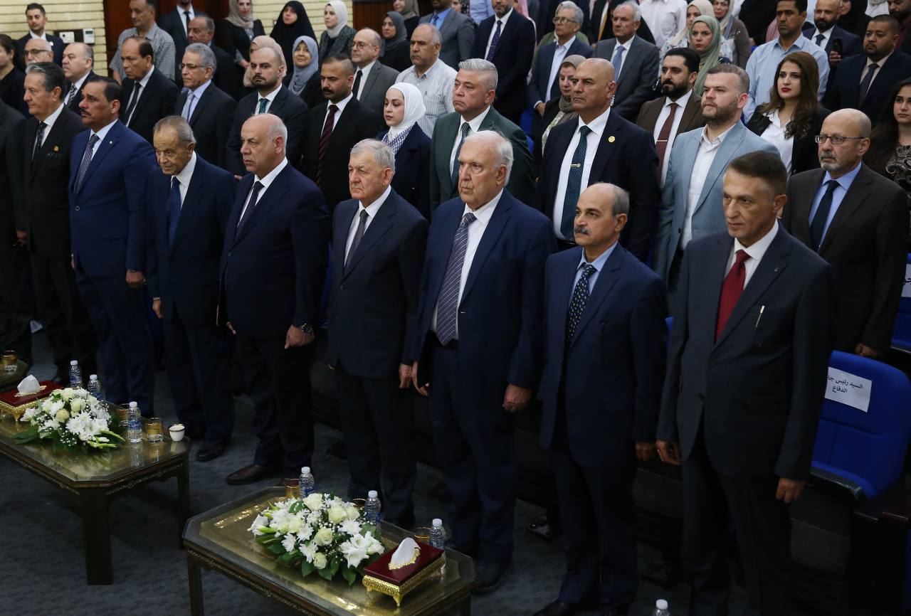 زار رئيس الجمهورية، عبد اللطيف جمال رشيد، اليوم الاثنين، بيت الحكمة، لحضور الحفل التأبيني لرئيس قسم الدراسات السياسية والاستراتيجية الأستاذ الدكتور محمود علي الداود.