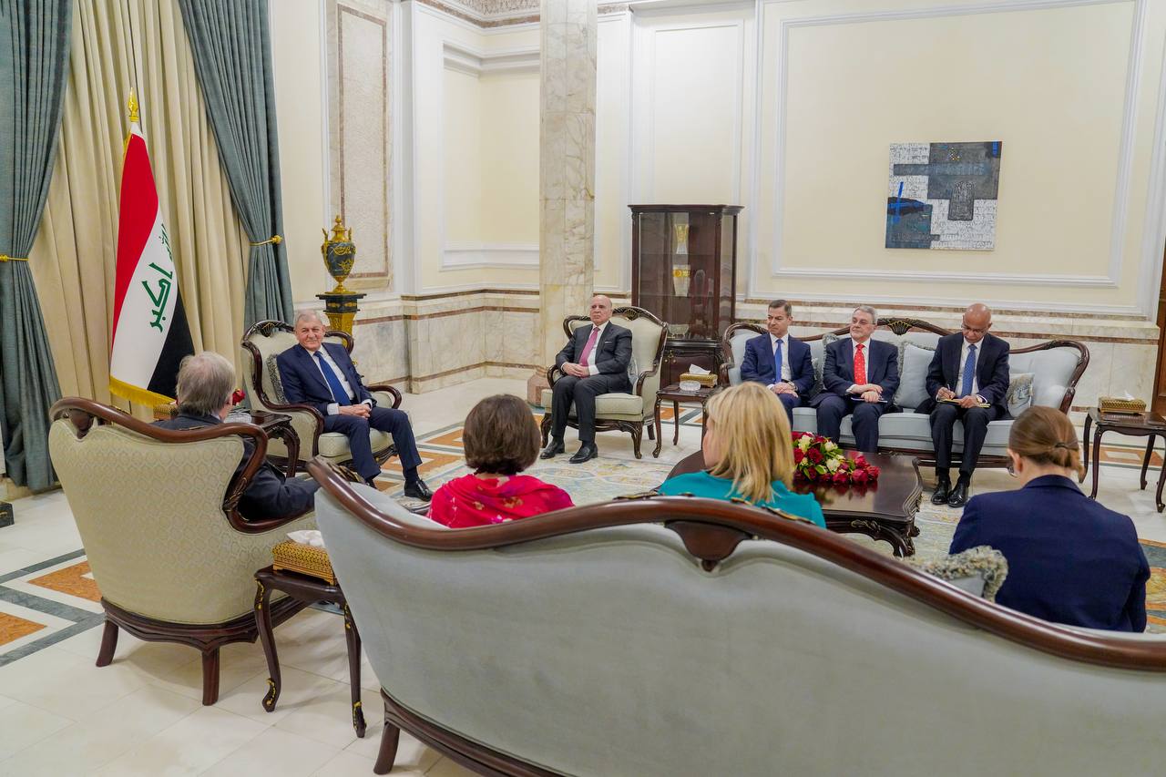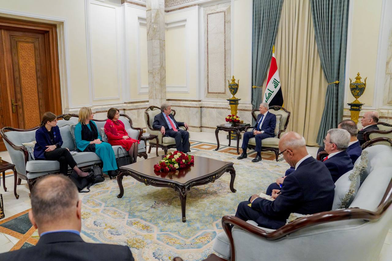 استقبل فخامة رئيس الجمهورية الدكتور عبداللطيف جمال رشيد، اليوم الأربعاءفي قصر بغداد، الأمين العام للأمم المتحدة السيد أنطونيو غوتيرش والوفد المرافق له”.