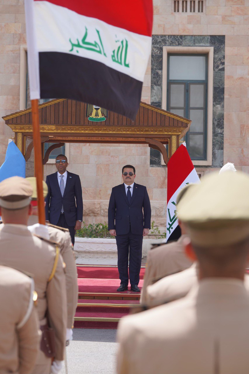 وذكر المكتب الإعلامي لرئيس مجلس الوزراء، في بيان تلقت “خليك ويانة” نسخة منه، أن “رئيس مجلس الوزراء محمد شياع السوداني، استقبل اليوم، رئيس الوزراء بجمهورية الصومال الفدرالية حمزة عبدي بري، والوفد المرافق له”، مضيفاً “حيث أقام السوداني، مراسم استقبال رسمية لرئيس الوزراء الضيف، في القصر الحكومي بالعاصمة بغداد، تخللها عزف النشيد الوطني لكلا البلدين”.